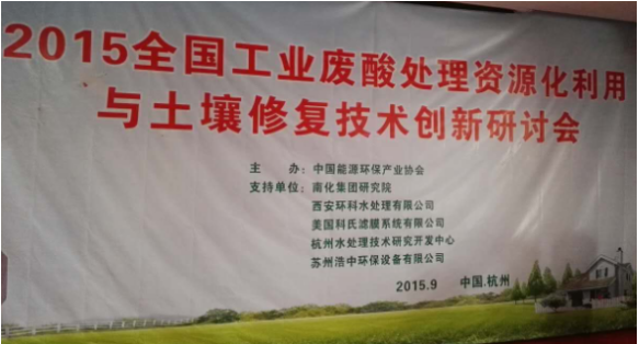 9月18日~20日,我公司派技術人員參加了在杭州舉辦的“2015全國工業(yè)廢酸處理資源化利用與土壤修復技術創(chuàng)新研討會”。